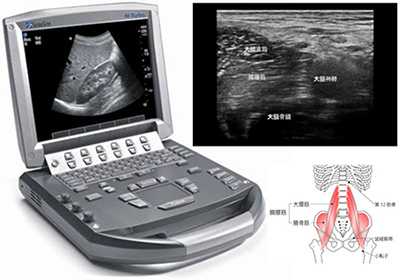 1.問診では、『超音波画像診断装置(エコー)』を用いるので、画像から硬く凝り固まったインナーマッスルの状態が一目瞭然。