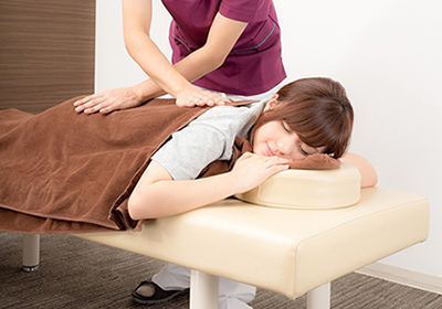 2.『電気治療器』を用いて、硬く凝り固まった筋肉や関節をゆっくりほぐしていく。